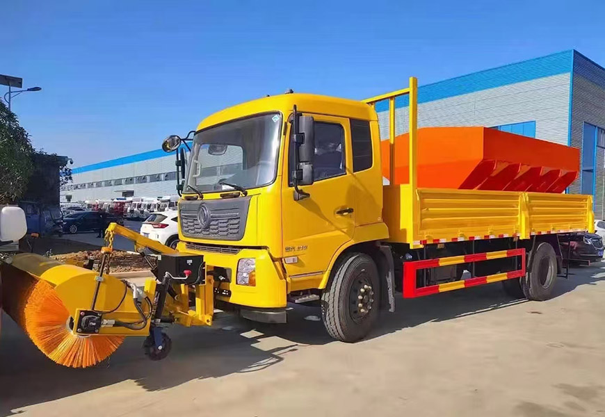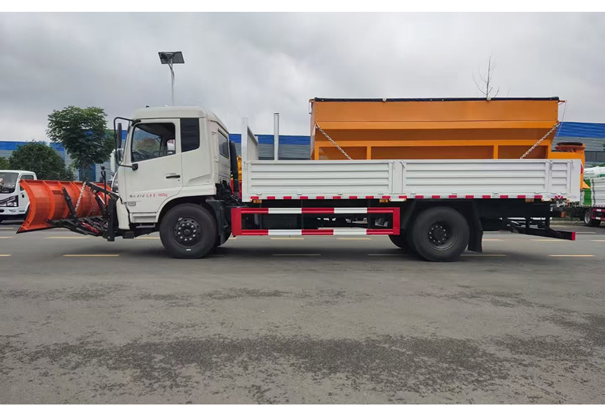 | 上裝配置 | 整體避障除雪鏟,夜間工作燈,車取力重型除雪鏟(左右雙液壓驅動)可搭配8立方或者10立方融雪撒布機(獨立柴油動力,鏈條刮板輸送,采用V型料倉,頂部帶防雨罩,折疊式不銹鋼撒布盤)3-3.5米雪鏟、3-3.5米雪鏟及撒布機均采用集成按鍵駕駛室操作。 | ||