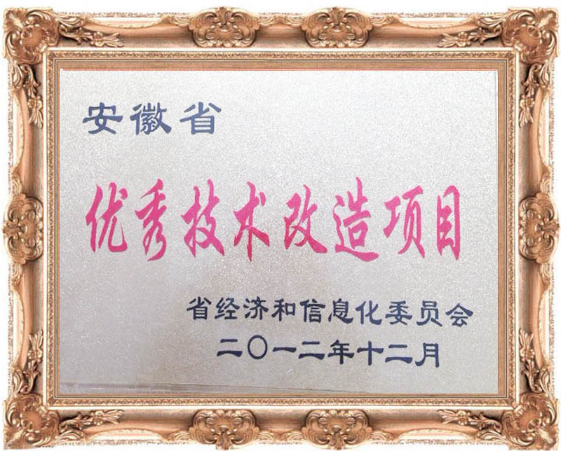 安徽省委,政府為促進我省經濟發展方式轉變,推動工業經濟又快又好的發展為目的,對于在推進技術該著工作中做出貢獻的單位和個人進行表彰,安徽環瑞憑借年產1200萬米安全型自限溫電熱帶,發熱電纜技術改造項目,從眾多企業中脫穎而出,被安徽省經信委授予“優秀技術改造項目”也是安徽省同行業唯一家獲此殊榮,此項榮譽顯示了安徽環瑞生產規模已成為省領先,國內先進的電熱帶、發熱電纜生產基地。