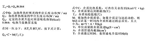 在工程設(shè)計(jì)中有時(shí)會碰到這樣的情況,要求產(chǎn)品既能伴熱保溫。又能將介質(zhì)開始是靜止的或流速較慢,流量較少,且所需升溫的度數(shù)不高時(shí),有時(shí)用電伴熱產(chǎn)品也可以滿足設(shè)計(jì)要求。此時(shí),該電伴熱產(chǎn)品的設(shè)計(jì)功率所產(chǎn)生的熱量按下式計(jì)算: