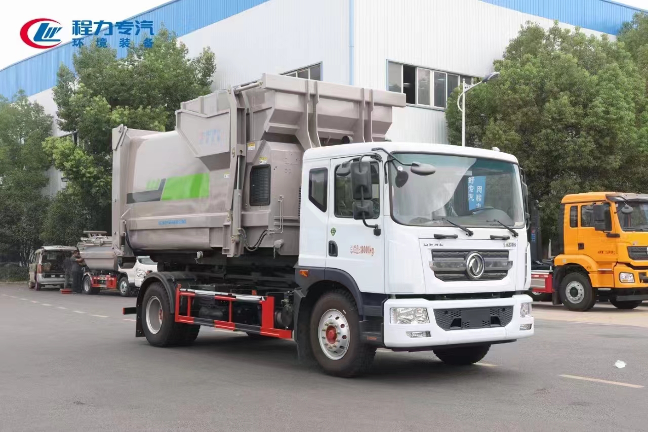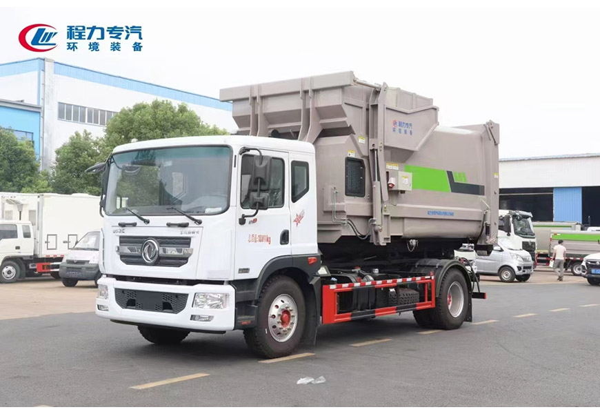 新工藝國六東風多利卡D9勾臂車+移動壓縮箱
