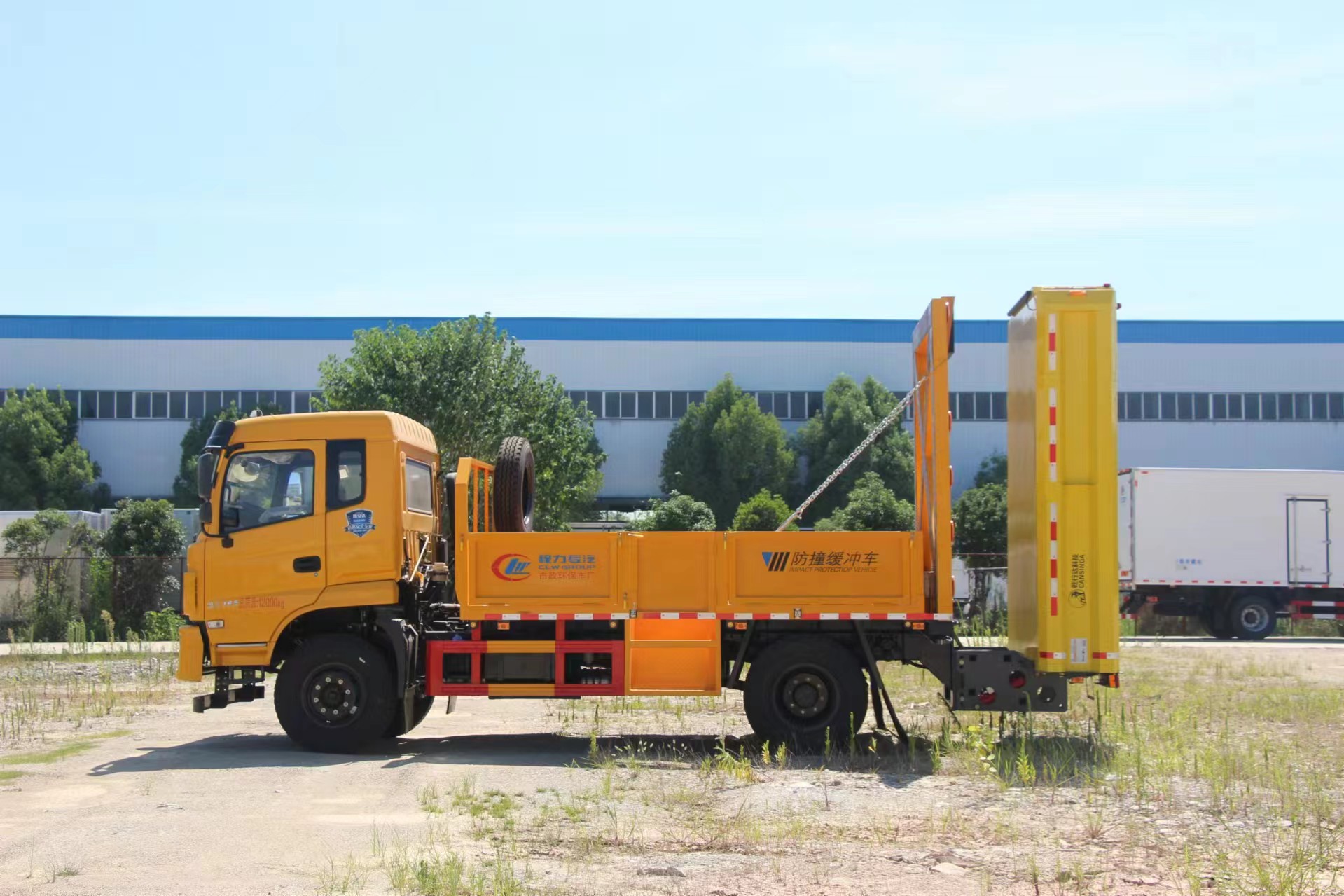 | 上裝配置 | 采用Q235國標邊3mm底板花紋板4mm厚,箱體后部防撞緩沖模塊包采用國際知名技術產品100E防撞緩 沖模塊,防撞緩沖吸能模塊主要由車載防撞緩沖墊和導向標志架組成,充當施工作業車輛后方的緩沖衛士。 如若發生追尾事故,能夠在肇事車輛和前方施工作業區域之間構建一個緩沖區域,通過機具結構變形吸收撞 擊的能量,最大限度地降低被保護人員及設備遭到碰撞的幾率。高性能液壓系統,可實現快速舉升和落下操 作,方便設備運輸轉場,一鍵啟動功能,舉升和落下防撞裝置,當防撞裝置未完全落下到工作位置或舉升到 垂直運輸位置時,會有自動警告音提示。 | ||