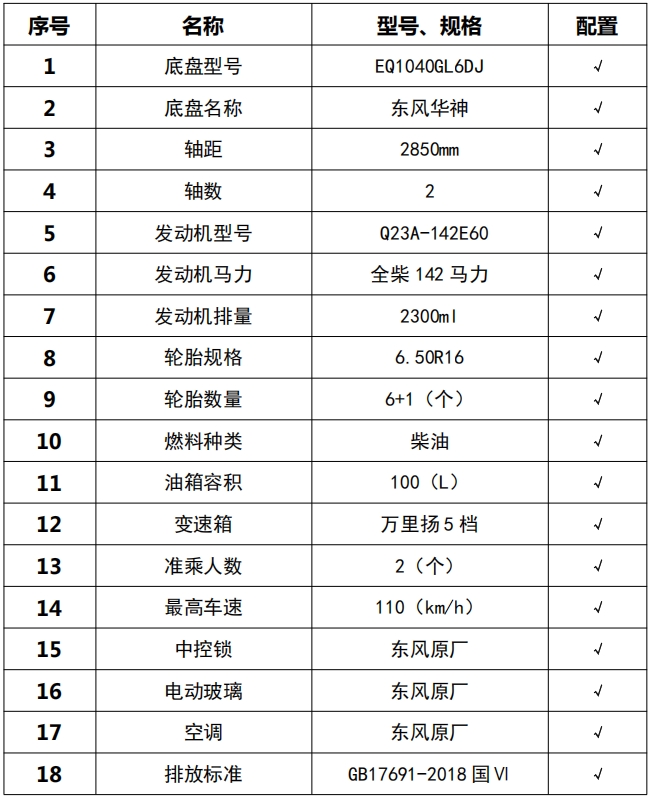 整車技術參數