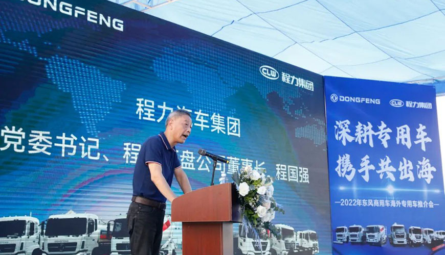 5月27日上午,陽光明媚晴空萬里,在風景如畫花園式的程力新廠底盤大樓廣場上,程力汽車集團與中國東風汽車工業進出口有限公司,聯袂舉行了一場隆重而又別開生面的“深耕專用車,攜手共出海”商用車新產品大型推薦會。